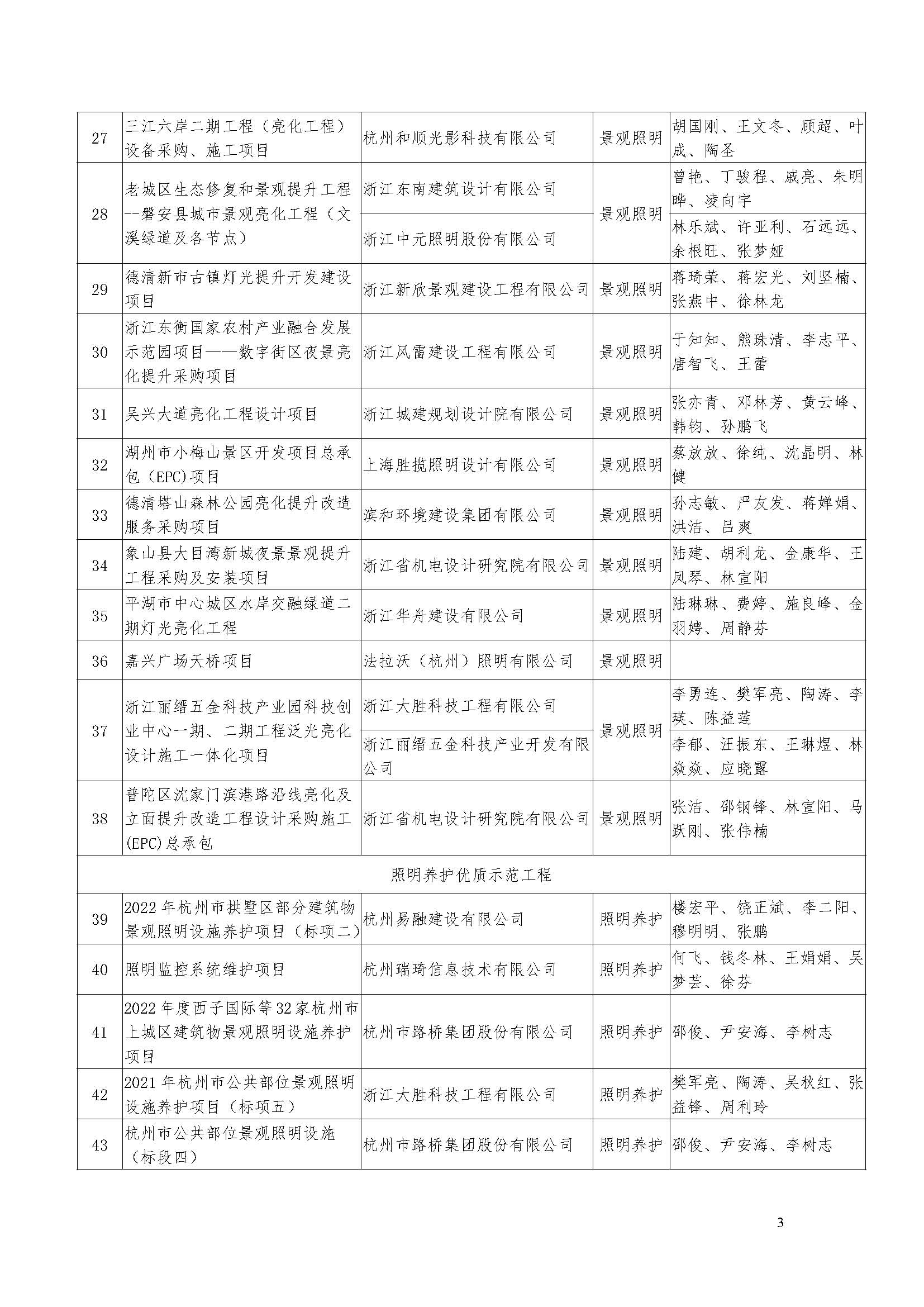 关于2023年度杭州市城市照明行业优质示范工程选树结果的通知