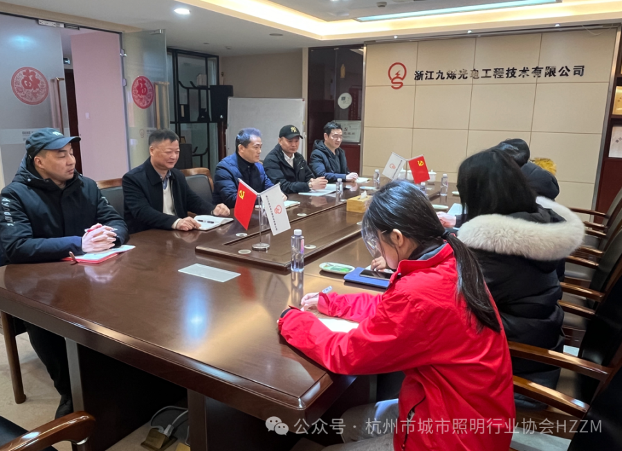 3月1日,杭州市城市照明行业协会秘书处在王建秘书长的带领下走访了浙江九烁光电工程技术有限公司。