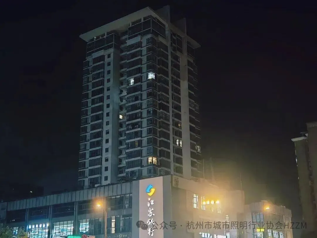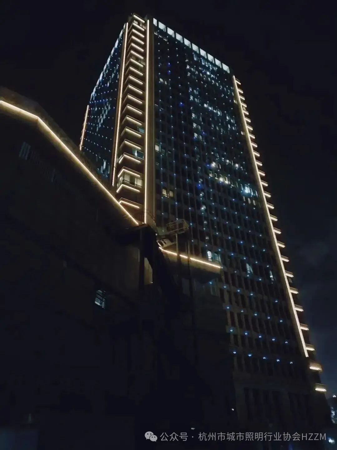 作为庆春商圈核心地标,西子国际501大厦原有非LED传统灯具存在光色偏黄、亮度不均、能耗偏高问题。此次改造全面替换135套老旧灯具为高显色性LED洗墙灯,并在建筑外立面加装智能调光轮廓灯,实现暖橙、明黄等色系及动态渐变效果切换。亮化升级后,楼宇照明效率提升40%以上,能耗降低近60%,有效带动商圈夜间客流增长。