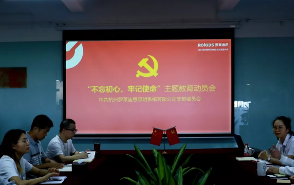 9月20日下午,杭州罗莱迪思照明系统有限公司在公司党员活动室召开“不忘初心、牢记使命”主题教育动员会,深入学习贯彻习近平新时代中国特色社会主义思想,认真落实中央和省市区委关于主题教育的各项要求,对开展主题教育进行动员部署。