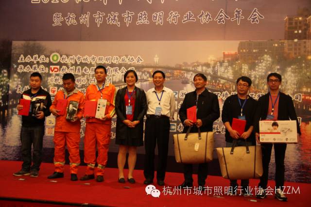 接着,大会还颁发了第四届杭州市城市照明行业技能比赛的获奖单位和个人,获得优胜团体一等奖的是:浙江中博光电科技有限公司;获得优胜团体二等奖的是:滨和环境建设集团有限公司;获得优胜团体三等奖的是:杭州西湖区市政工程有限公司。