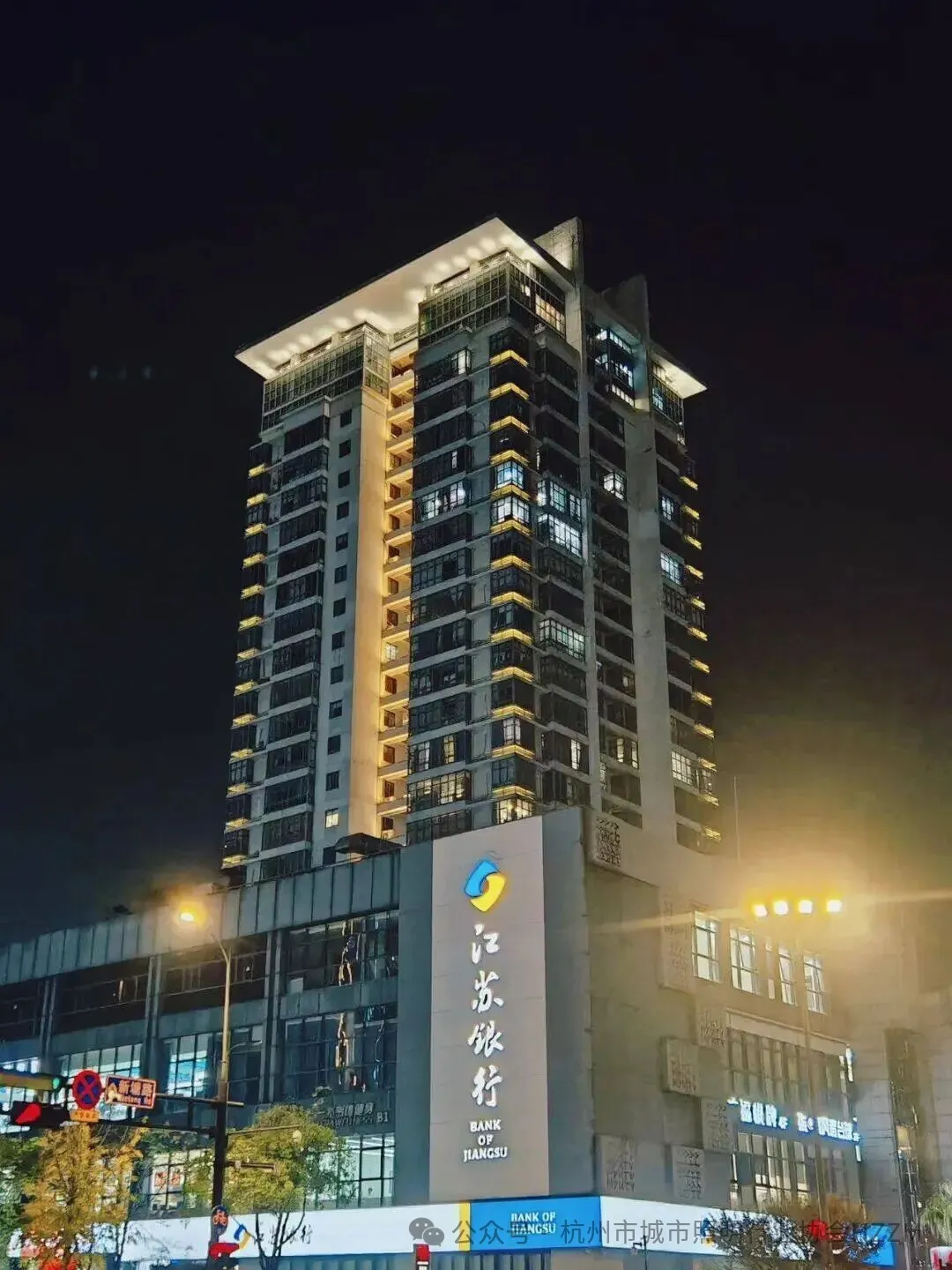 作为庆春商圈核心地标,西子国际501大厦原有非LED传统灯具存在光色偏黄、亮度不均、能耗偏高问题。此次改造全面替换135套老旧灯具为高显色性LED洗墙灯,并在建筑外立面加装智能调光轮廓灯,实现暖橙、明黄等色系及动态渐变效果切换。亮化升级后,楼宇照明效率提升40%以上,能耗降低近60%,有效带动商圈夜间客流增长。
