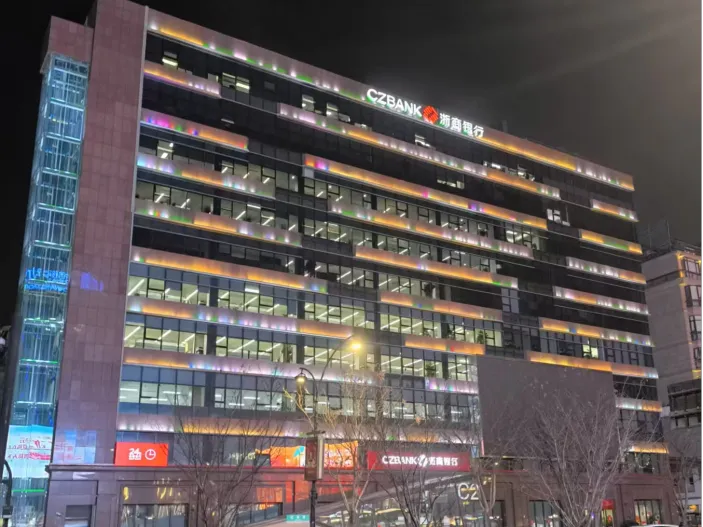 视觉提升同样亮眼——蓝天商务中心620余套LED洗墙灯沿窗铺展,老牌楼宇重拾温润;浙商时代大厦790余套高显色线条灯贴合金属格栅,成为武林商圈点睛之笔;红石中央大厦670余套线条灯勾勒利落轮廓,沉稳中透出精致。