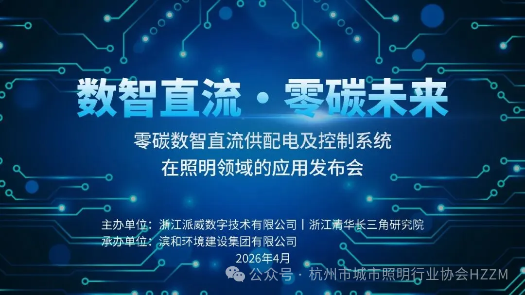2026年4月8日下午,浙江派威数字技术有限公司&清华长三角研究院能碳中心联合举办的“数智直流 零碳未来” —零碳数智直流供配电及控制系统在照明领域应用发布会,在滨和国际科创园圆满举行。来自科研院所、设计单位、合作伙伴的院士教授、专家学者、设计大咖等齐聚一堂,共同见证这一聚焦直流技术+数智赋能的前沿技术发布盛会。