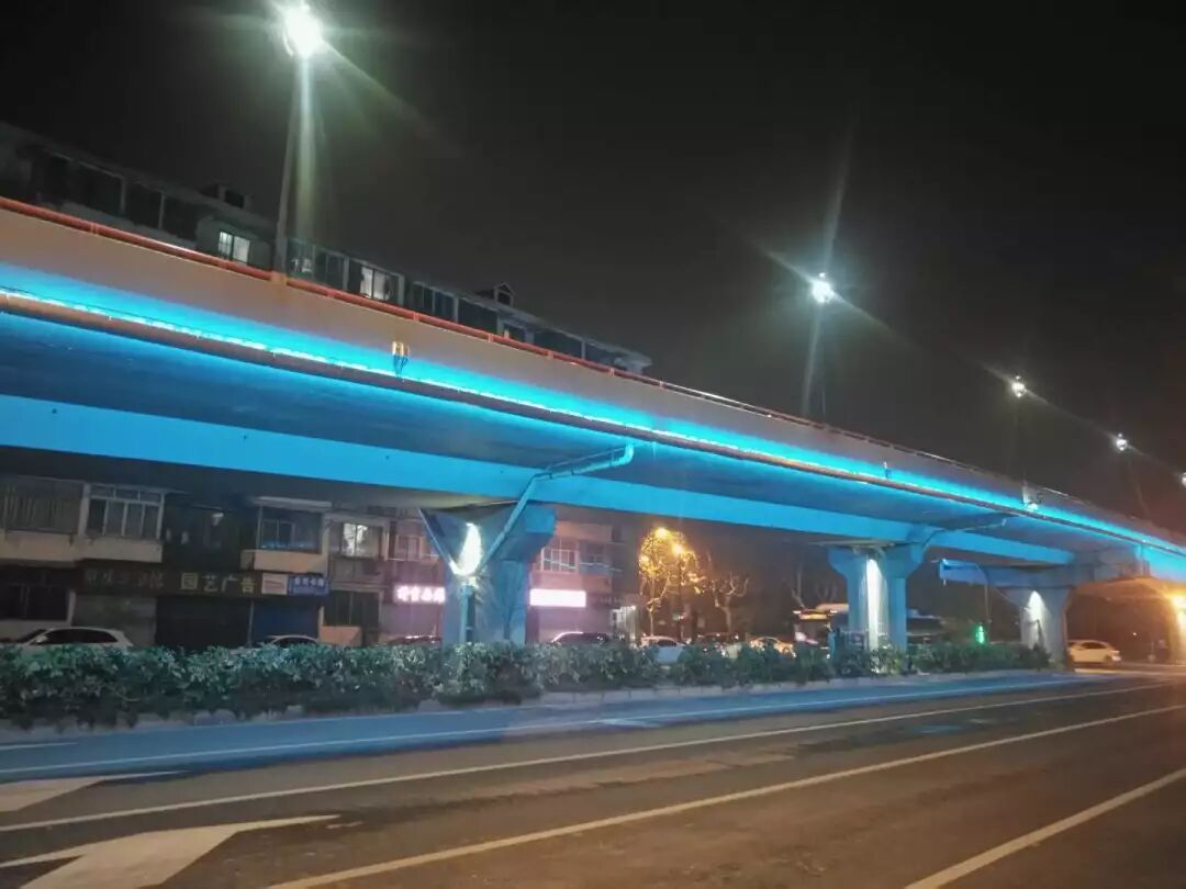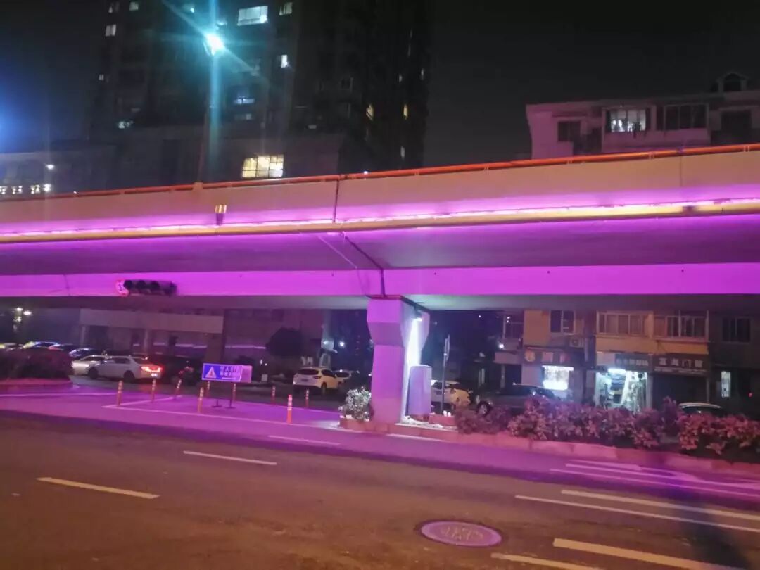 经过45天紧张而有序的施工,由滨和环境建设集团实施的体育场路高架桥亮化提升改造工程近日通过竣工验收。