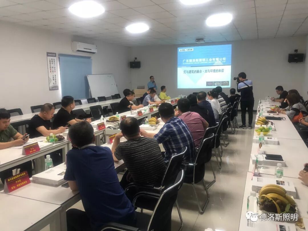广东德洛斯照明工业有限公司对吉林省照明学会领导一行的莅临指导表示热烈欢迎,德洛斯董事长兼总经理郭奇波向考察团成员们介绍了德洛斯的发展近况,并通过PPT讲解了德洛斯各款产品的技术特点以及各个工程应用案例的照明效果,强调城市照明是灯与建筑的融合、光与环境的和谐。