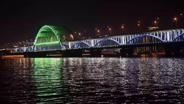 江水倒映着灯光,这是不同于白天的美