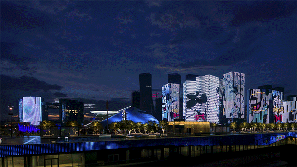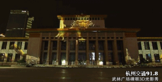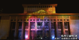 在浙江展览馆南侧外墙上,有约3000平方米的投影面积,通过先进的3D裸眼灯光秀技术,将诗画江南、山水浙江的壮美河山展现给市民与游客朋友们。