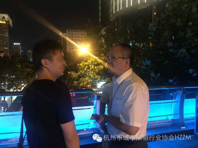 8月22日晚,杭州市城管委主任翁文杰,杭州市城管委副主任宋肖锋,杭州市城管委景观处处长俞飞,杭州市城管委景观处副处长韩明清,杭州市亮灯监管中心主任张平,杭州市亮灯监管中心副主任董中一行6人,冒着高温,利用晚上休息的时间,风尘仆仆来到延安路视察了杭百人行天桥和延安路人行天桥亮化工程项目。滨和环境建设集团有限公司董事长汤利忠、总经理杨永波、项目经理项玲均陪同。